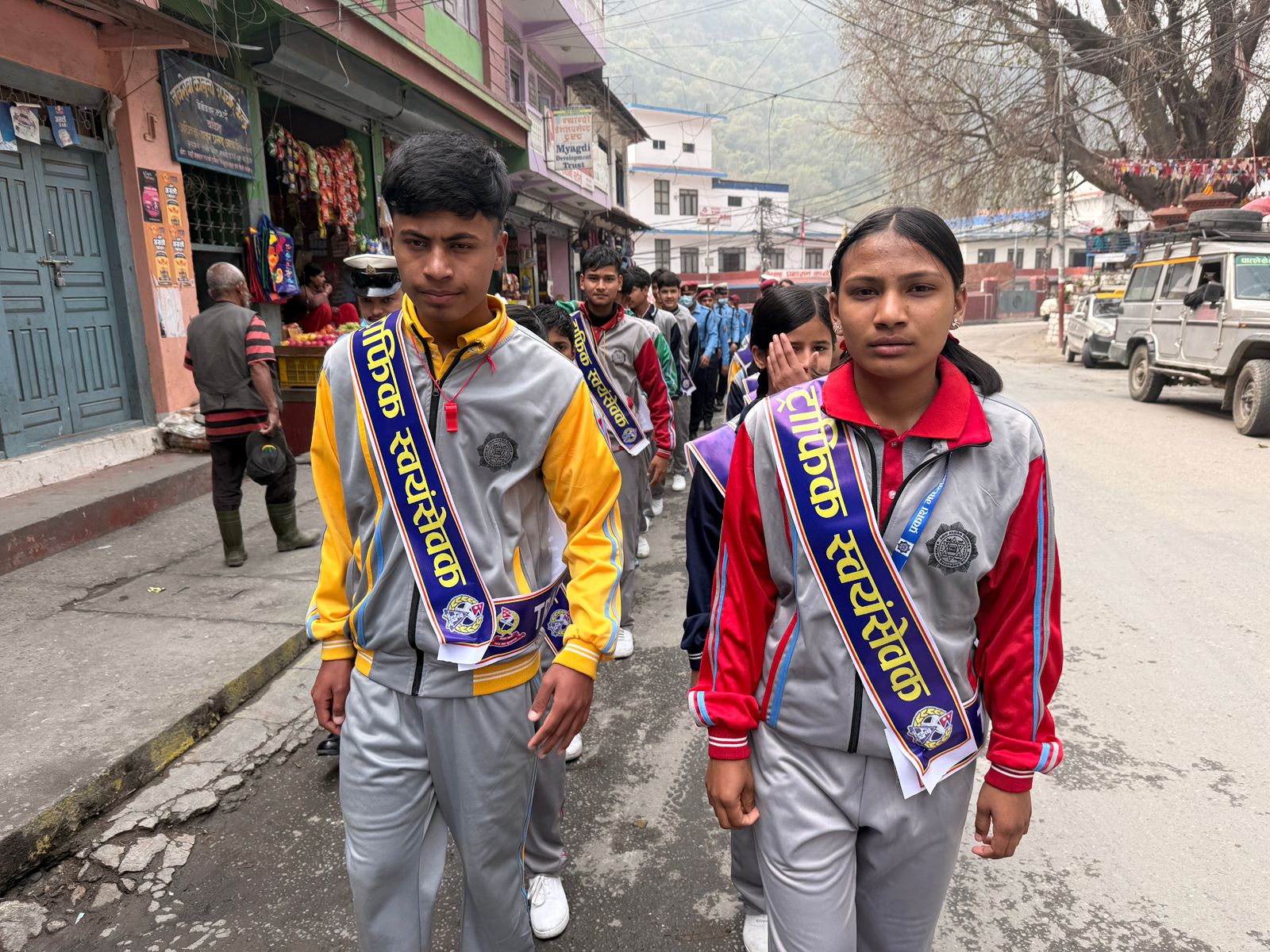 प्रकाश मावि बेनीमा कक्षा ९ मा अध्ययनरत अनिल किसान मंगलबारदेखि ट्राफिक स्वयंसेवक बनेर सदरमुकाम बेनीको चोकमा खटिएका छन् । उनीसँगै पढ्ने पुष्पा विकेले स्वयंसेवक बनेर सडक प्रयोकर्तालाई ट्राफिक नियमको बारेमा जानकारी गराउने नयाँ जिम्मेबारी पाएकी छन् । अनिल र पुष्पा जस्तै प्रकाश माविका २० छात्रछात्राले पार्किङ,भीडभाड र सवारीचाप हुने समयमा पैदलयात्रीलाई सहज, एकतर्फी नियमको पालना, विद्यालयको समयमा विद्यार्थीलाई सहयोग गर्ने गरी खटिएका छन् ।