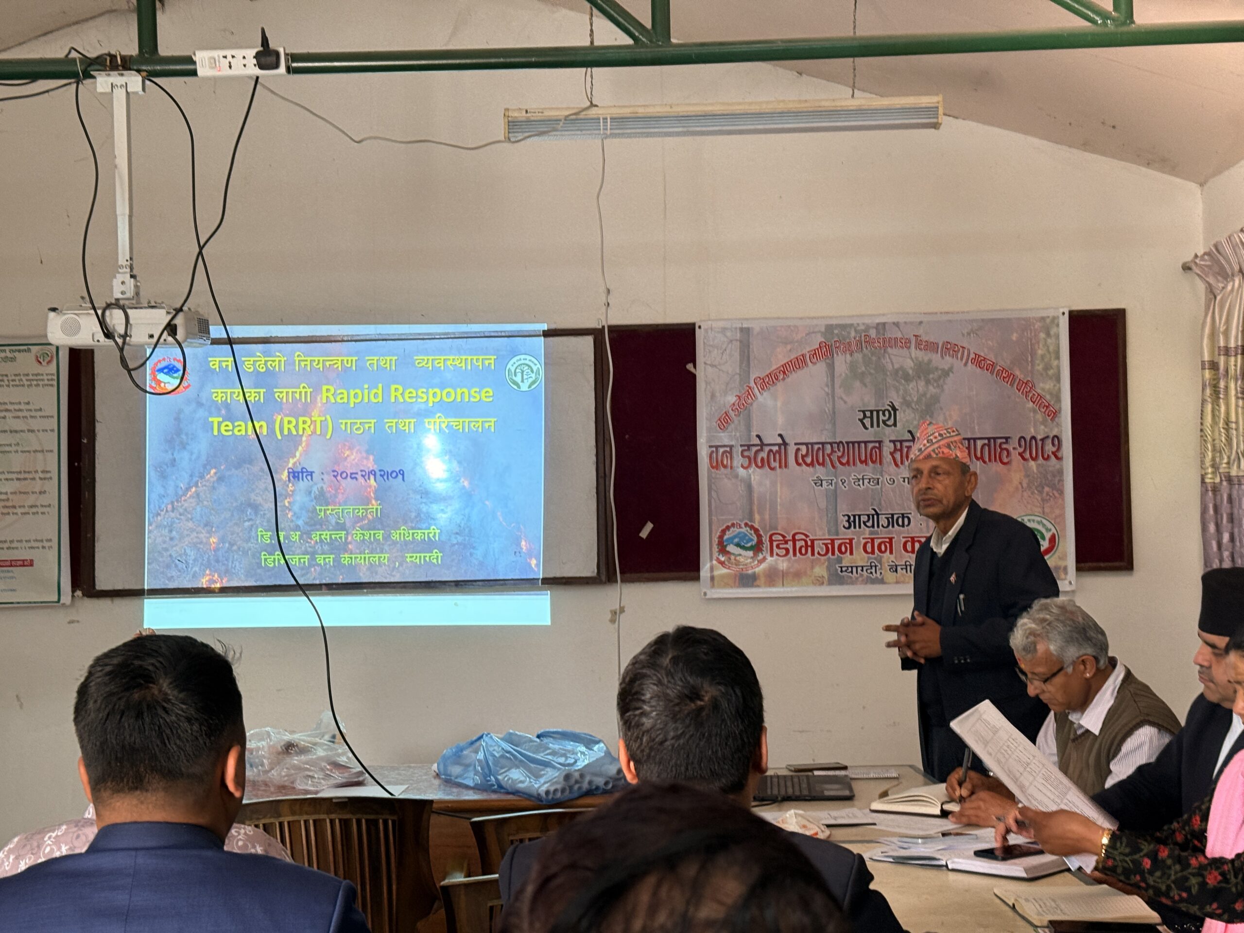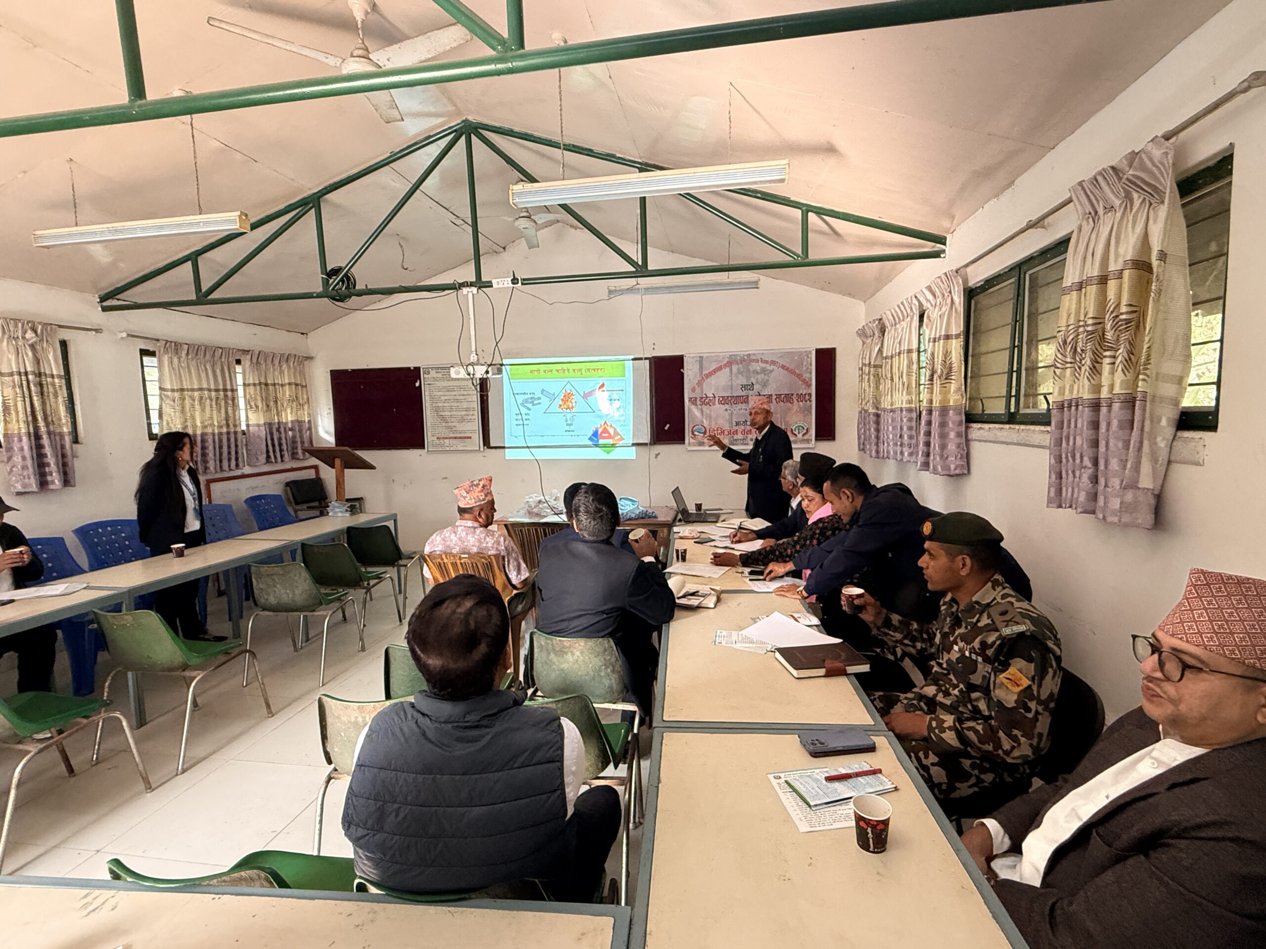 बैठकमा डिभिजन बन कार्यालयका प्रमुख बसन्त केशब अधिकारीले वन डढेलो व्यवस्थापनका लागि निरोधात्मक उपाय अवलम्बन गर्दै डढेलोबाट हुने जन, धन र वनको क्षति न्यूनीकरण गर्न डढेलो सचेतना सप्ताह कार्यक्रम बाहेक पनि आफ्नो क्षेत्रमा सक्रिय हुनुपर्नेमा जोड दिए ।