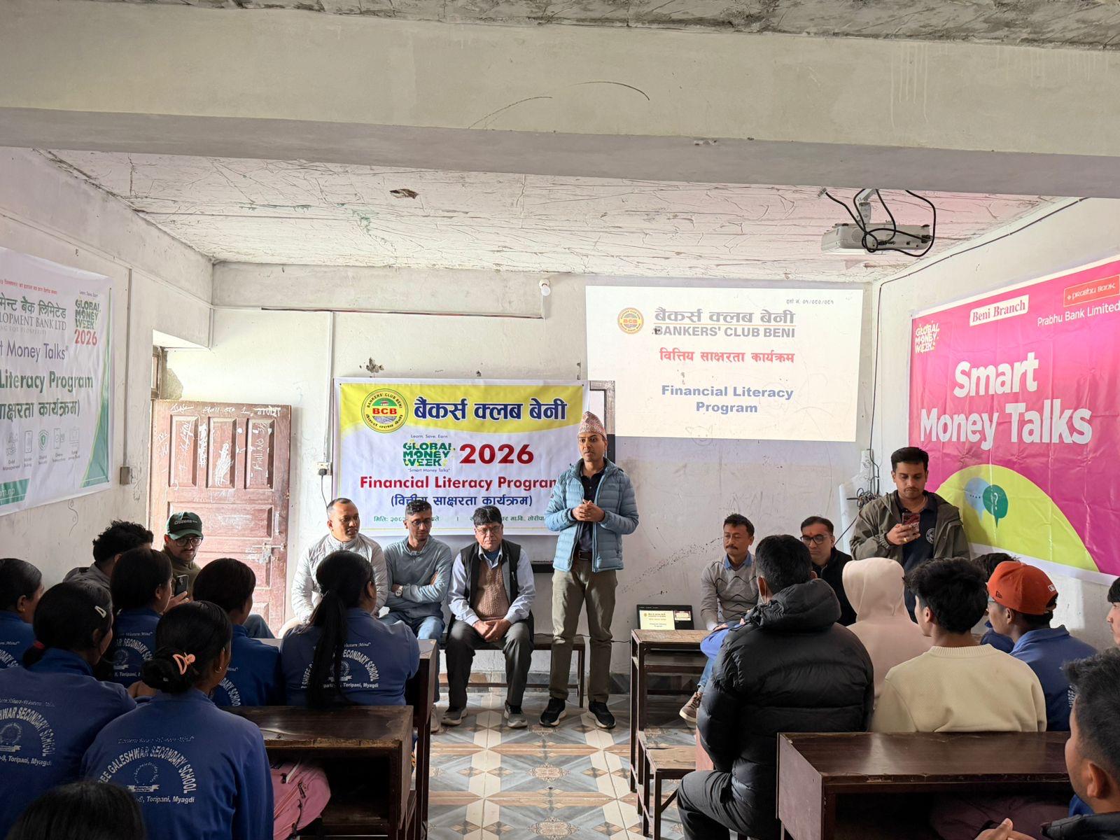 नेपाल बैंकर्स संघ म्याग्दीले ग्लोबल मनी विकको अवसरमा बेनी नगरपालिका–९, तोरीपानीस्थित गलेश्वर माविमा विद्यार्थीलक्षित वित्तीय साक्षरताका कार्यक्रमहरू आयोजना गरेको छ । म्याग्दीमा रहेका बैंक तथा वित्तिय संस्थाहरू छाता संस्था संघले साक्षरता कार्यक्रममा बचत, कर्जा, रेमिट्यान्स, डिजिटल बैंकिङ, बीमा, लगानी, अतिरिक्त बैंकिङ सेवाहरू, वित्तीय ठगी र वित्तीय अनुशासनका साथै म्याग्दीमा गरिरहेका विभिन्न कार्यक्रमका बारेमा जानकारी गराइएको थियो ।
