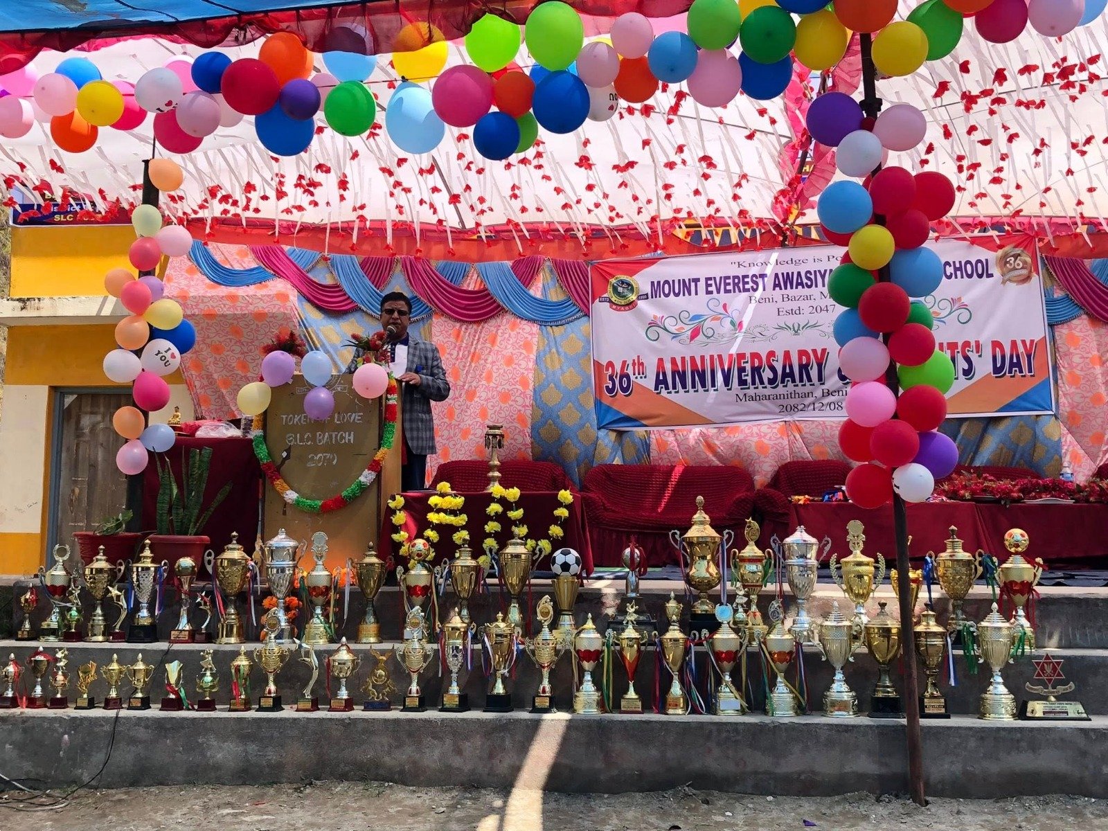 म्याग्दीको बेनी बजारमा अवस्थित माउण्ट एभरेष्ट आवासीय माविको ३६ औँ वार्षिकोत्सव तथा अभिभावक दिवस विविध कार्यक्रमका साथ आइतबार सम्पन्न भएको छ । गत शुक्रबार शिक्षा मार्ग ब्लक र आइतबार महारानीथान ब्लकमा विद्यार्थी,अभिभावक र शिक्षकहरुलाई सम्मान,२०५७ सालदेखि हालसम्म एसइईमा उत्कृष्ट परिणाम ल्याइ जिल्ला प्रथम हुन सफल भूतपूर्व विद्यार्थीहरुको फोटो प्रदर्शन लगाएत विविध कार्यक्रमका साथ आइतबार सम्पन्न भएको हो ।