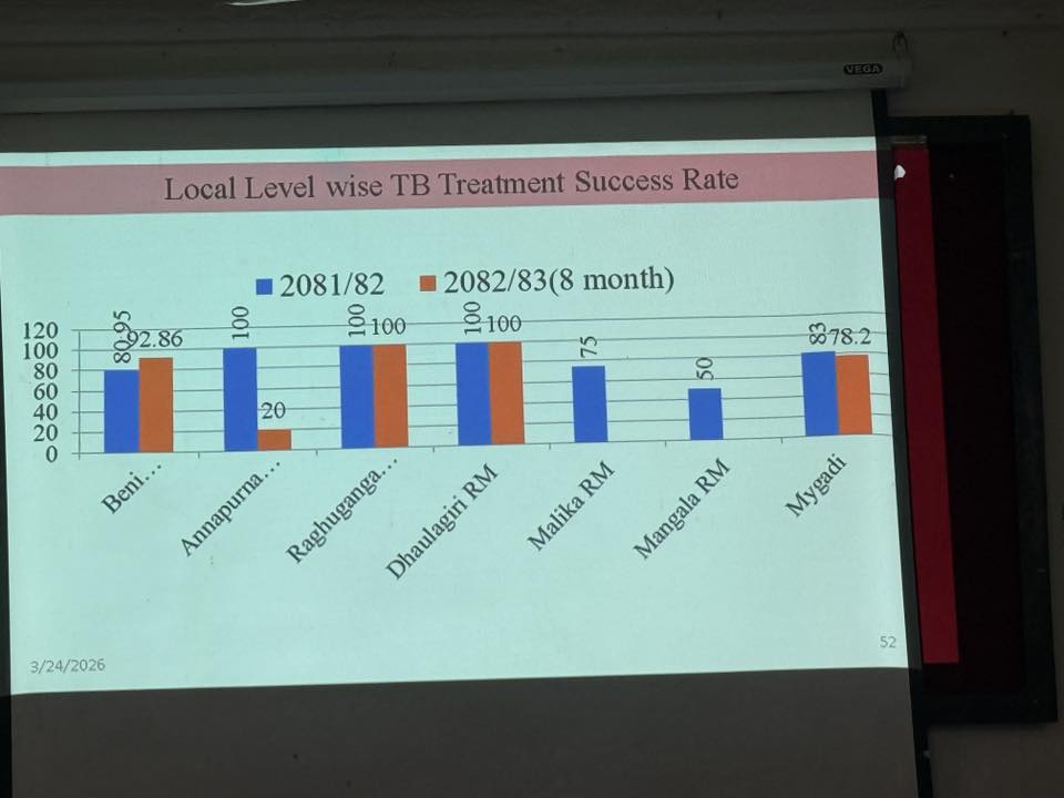 विश्व क्षयरोग दिवसको अवसरमा आयोजित पत्रकार अन्तरक्रिया कार्यक्रममा प्रदेश जनस्वास्थ्य कार्यालय म्याग्दीका प्रमुख भुवन ठकुराठीले म्याग्दीमा लक्ष्यभन्दा निकै कम मात्रै पहिचान भएको बताए । उनका अनुसार गण्डकी प्रदेशमा ११ जिल्लामा कुल एक हजार चार सय ५२ जनामा पुष्टि भएको छ । सबै भन्दा कम मुस्ताङमा १० जनामा क्षयरोग पुष्टि भएको छ भने सबै भन्दा बढी नवलपरासी सुस्ता पूर्वमा तीन सय ५९ जनामा पुष्टि भएको ठकुराठीको भनाई छ ।