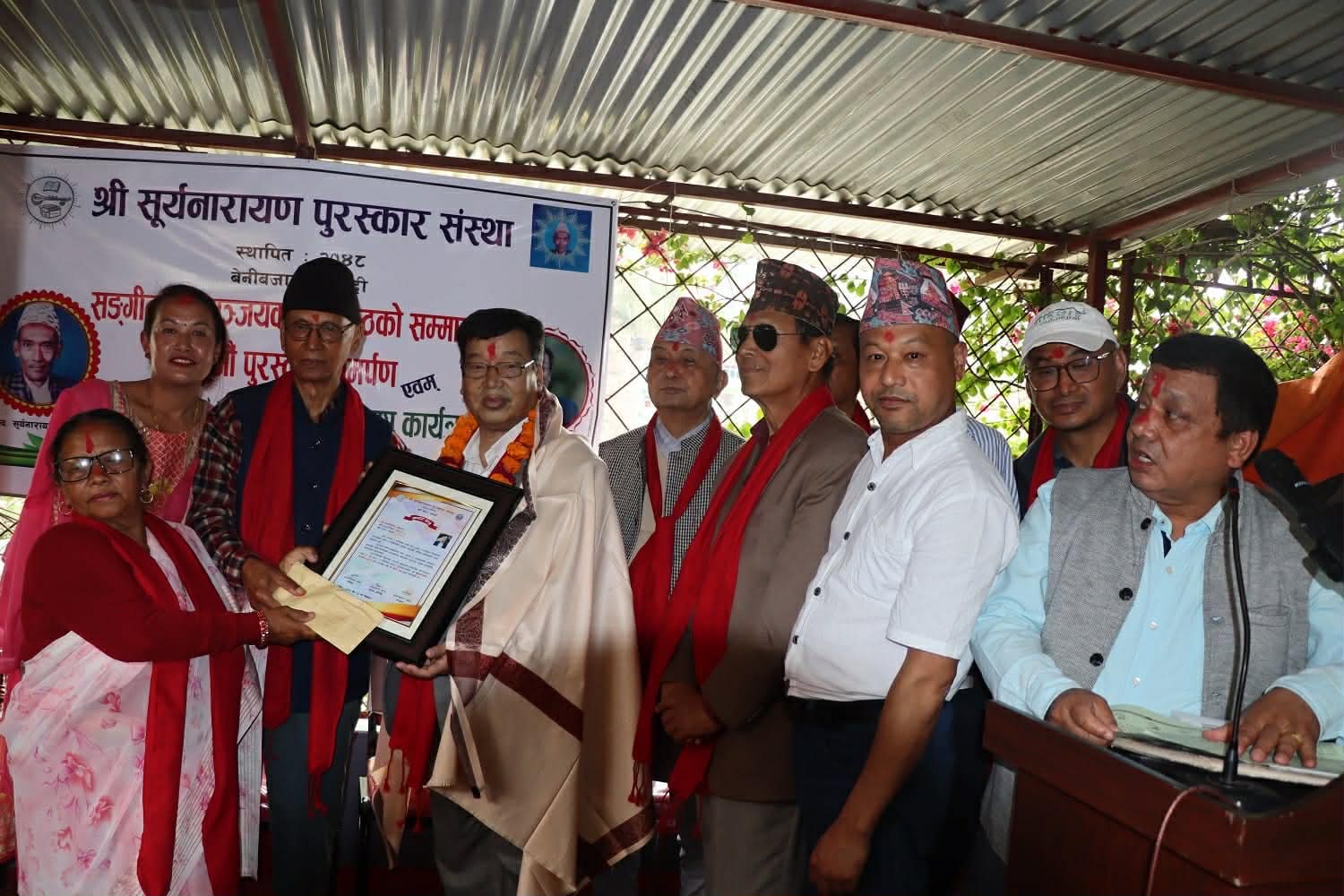 म्याग्दीका संस्कृतिकर्मी सञ्जयकुमार श्रेष्ठलाई ‘सूर्यनारायण पुरस्कार’ अर्पण गरिएको छ ।
