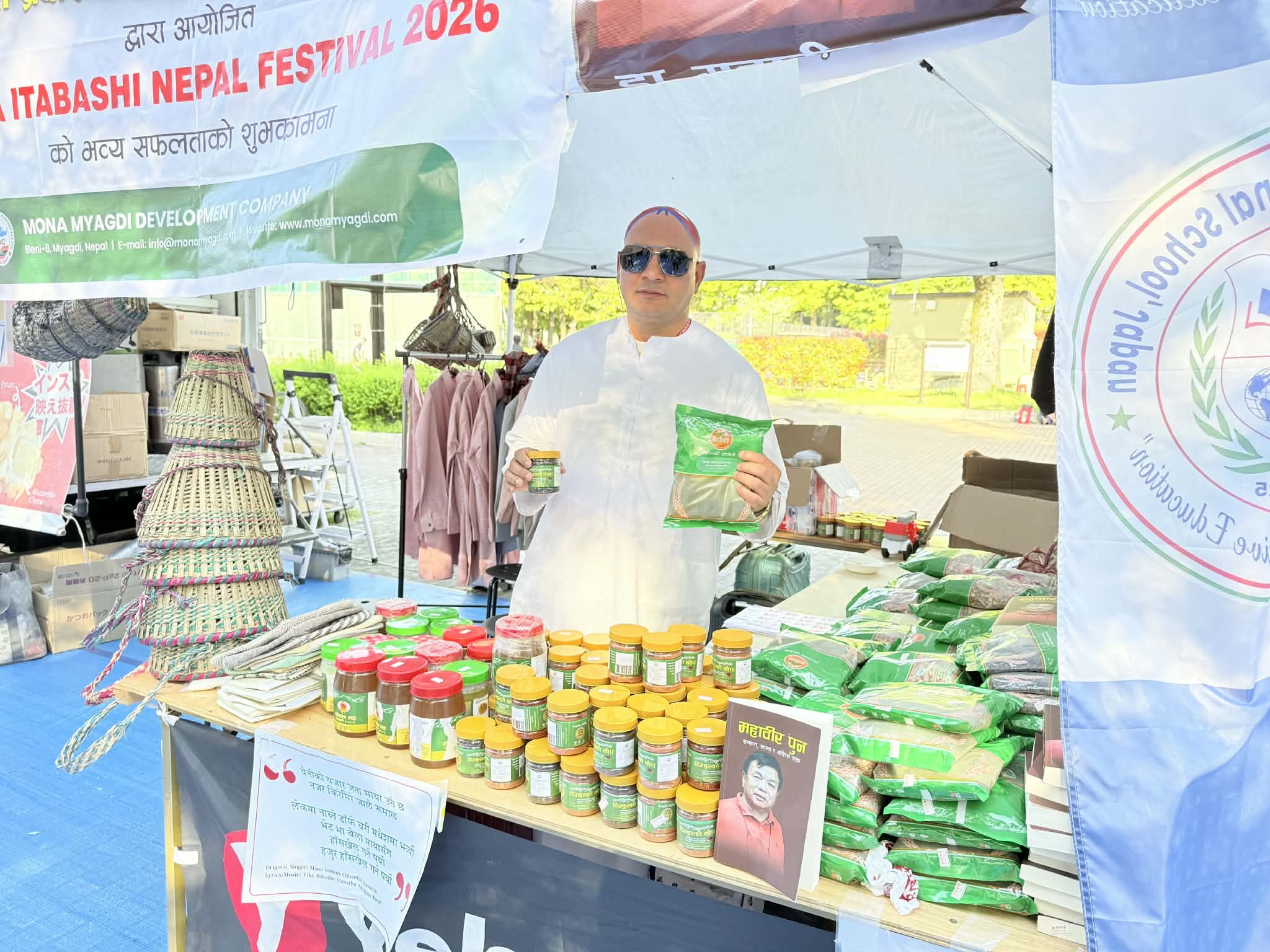 मोना ईताबासी नेपाल फेस्टिवलमा म्याग्दीको उत्पादन टिम्बुर,सिस्नुको धुलो, मह, भटमास,भाँगो, मह, घ्यु, फापरको पिठो लगायतका विभिन्न थरी उत्पादनलाई समेत बिक्री तथा वितरण भइरहेको मोना जापानका उपाध्यक्ष हिरा बुढाथोकीले बताउनुभयो । ‘म्याग्दीमा उत्पादन हुने टिम्बुर जापानमा प्रख्यात छ, जापानमा रहेका नेपालीलाई आर्कषित गर्न स्टलमार्फत प्रचारप्रसार भइरहेको छ’ उपाध्यक्ष बुढाथोकीले भन्नुभयो । उहाँका अनुसार मोना जापानले आयोजना गर्ने सार्वजनिक कार्यक्रमहरुमा म्याग्दीका उत्पादनको बजारीकरण सहित प्रर्वधनमा समेत सघाउने गरिएको छ ।
