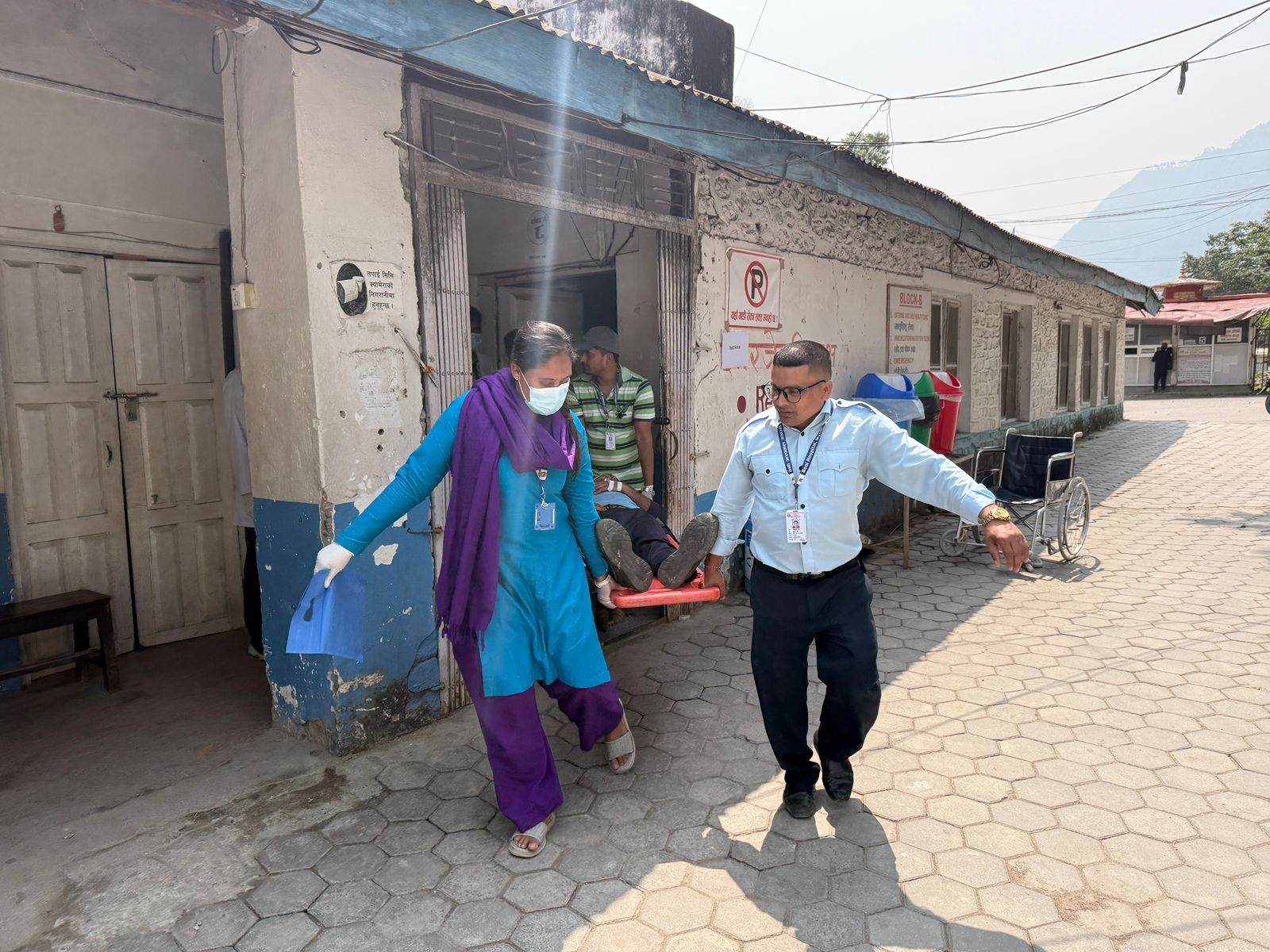 त्यस क्रममा अस्पतालमा कार्यरत चिकित्सक र नर्सहरू उपचारमा खटिएका थिए भने सुरक्षाकर्मीले बिरामी स्थानान्तरणमा सहयोग गरेका थिए ।
