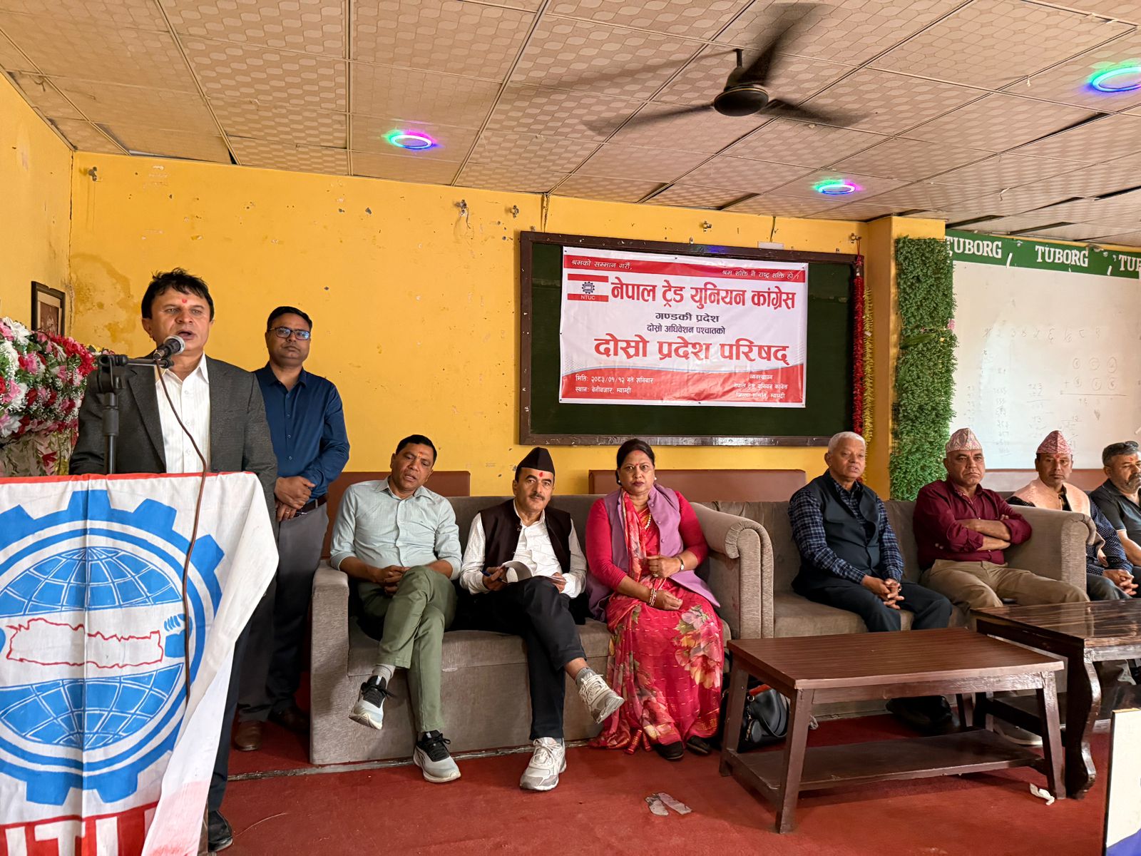 नेपाल ट्रेड युनियन कांग्रेस गण्डकी प्रदेशको दोस्रो प्रदेश परिषद सम्पन्न भएको छ । ट्रेड युनियन कांग्रेस म्याग्दी शाखाको आतिथ्यतामा म्याग्दी जिल्लाको बेनी बजारस्थित होटल शिखरमा शुक्रबार र शनिबार गरी दुई दिनसम्म सञ्चालन भएको परिषदले संगठन सुदृढीकरणदेखि समसामयिक राजनीतिक परिवेशसम्मका विविध विषयमा गम्भीर छलफल गर्दै महत्वपूर्ण निर्णयहरू गरेको छ ।