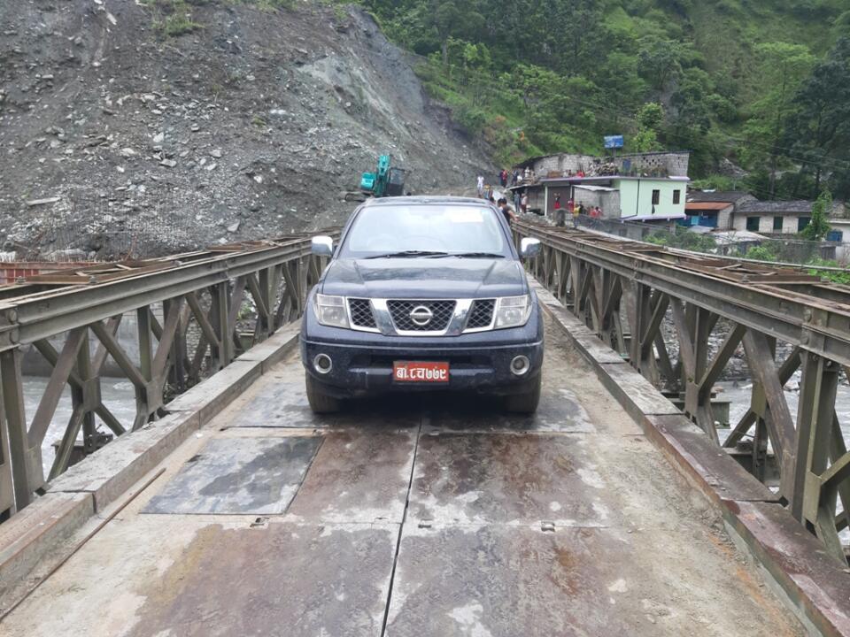 मर्मतपछि गलेश्वरको बेलिब्रिजबाट सवारीसाधन वारपार (फोटो फिचर)