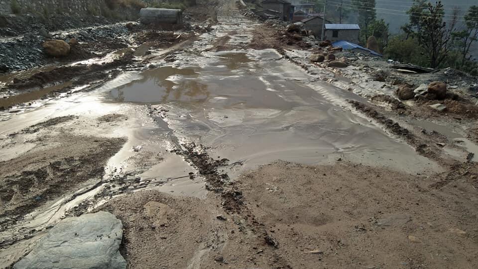 बर्षाले पिप्ले-भगवती सडकको बेहाल