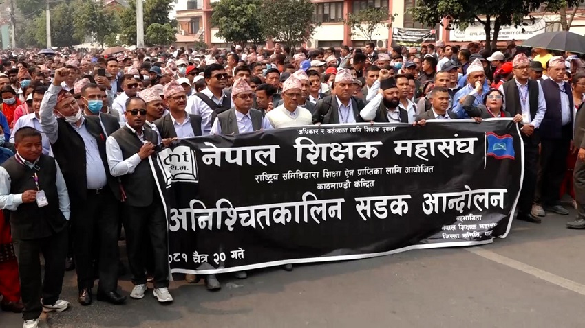 काठमाण्डाैमा शिक्षकहरूको अनिश्चितकालीन प्रदर्शन
