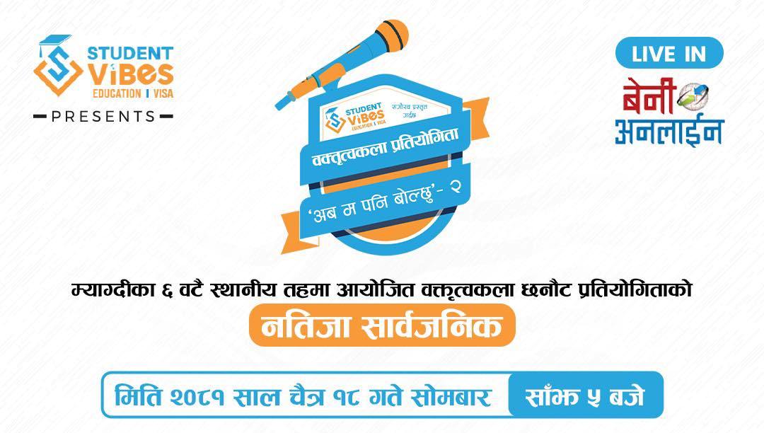’अब म पनि बोल्छु’ वक्तृत्वकलाको पालिकास्तरको नतिजा चैत्र १८ गते सार्वजनिक हुने