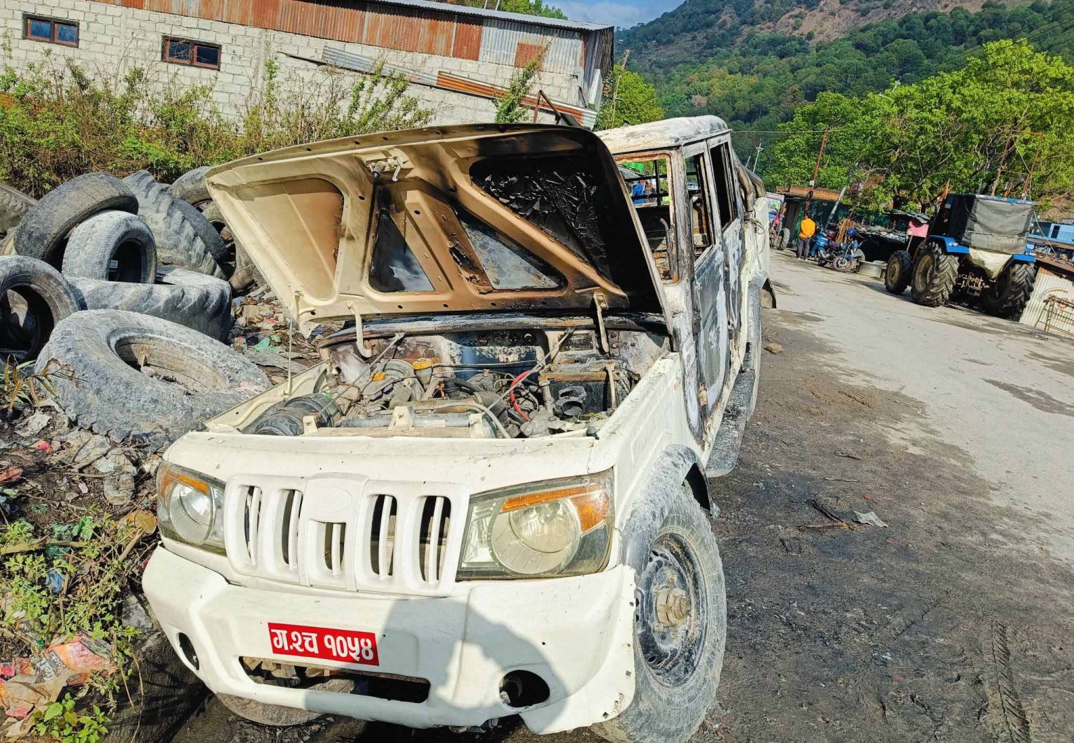बेनीको हाडेभिरमा पार्किङ गरिएको बोलेरोमा आगजनी