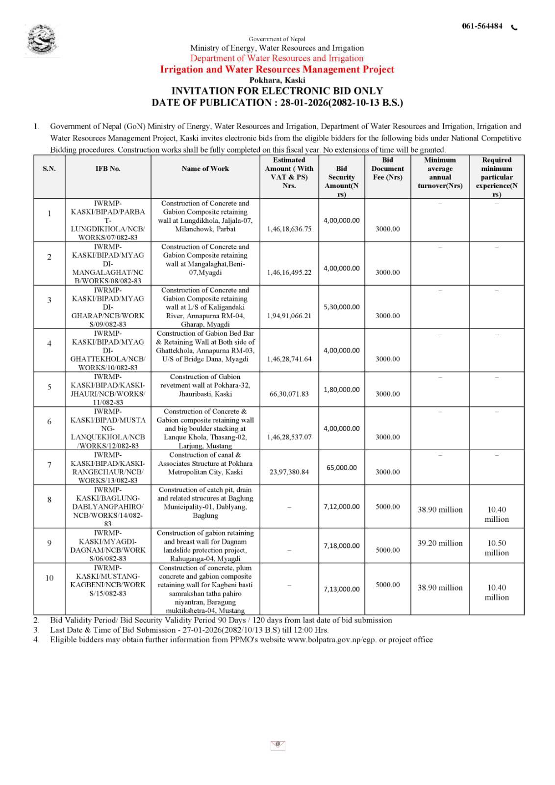 म्याग्दीमा एकैपटक चार वटा बस्ती संरक्षण आयोजनाका लागि ठेक्का