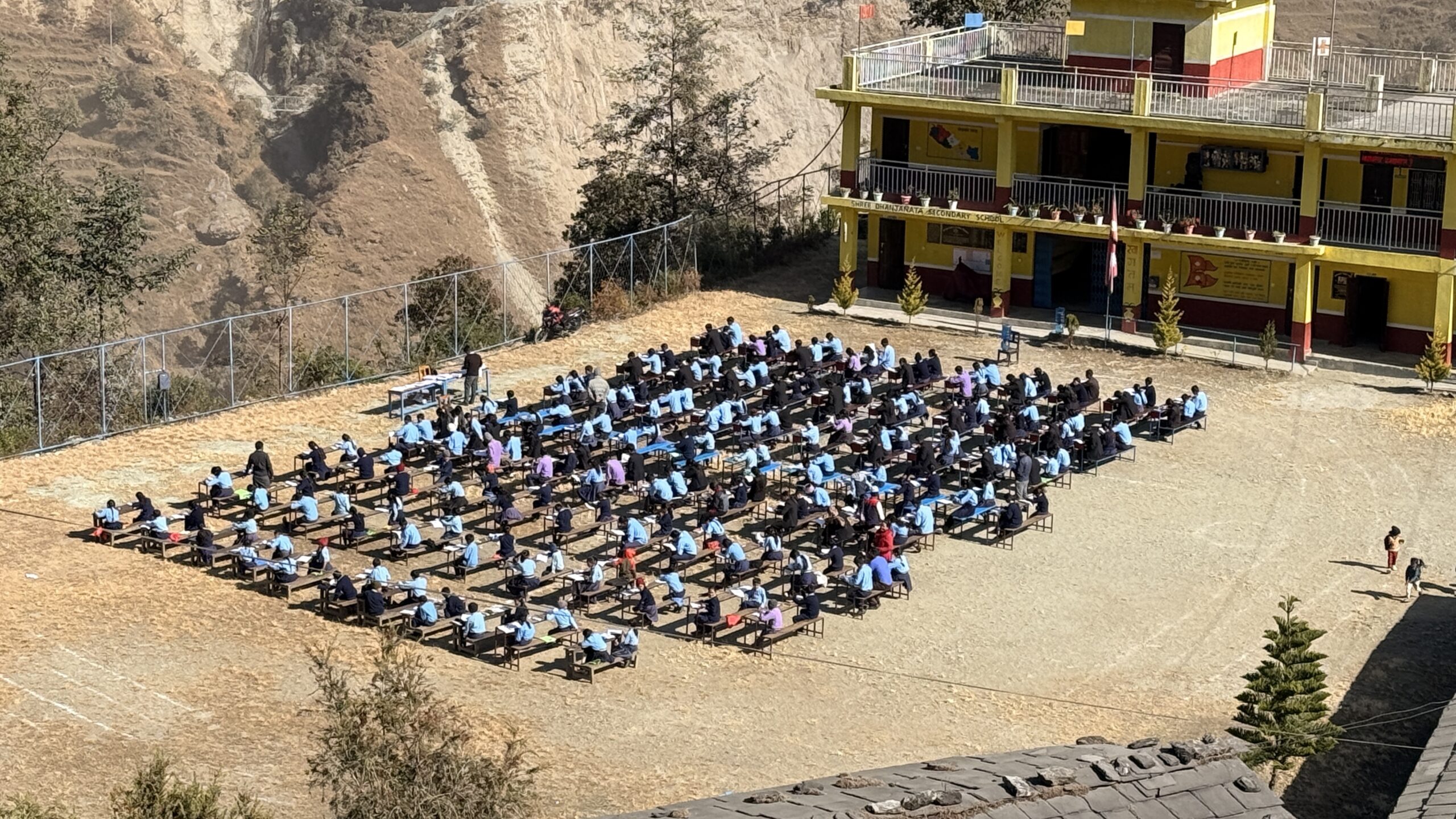 घाम ताप्दै, परीक्षा दिँदै विद्यार्थी
