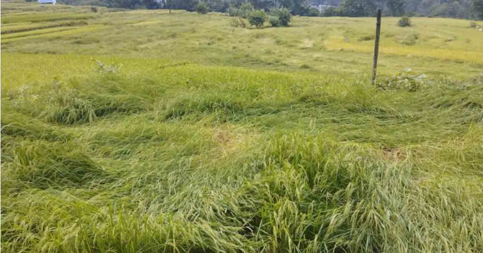 बेमौसमी वर्षा र पोके रोगका कारण पाक्नै लागेको धानबालीमा क्षति