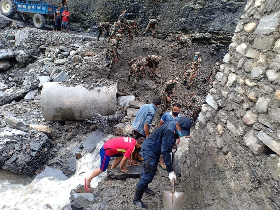 मङ्गलाघाटमा पाखो सम्याएर खेलमैदान निर्माण