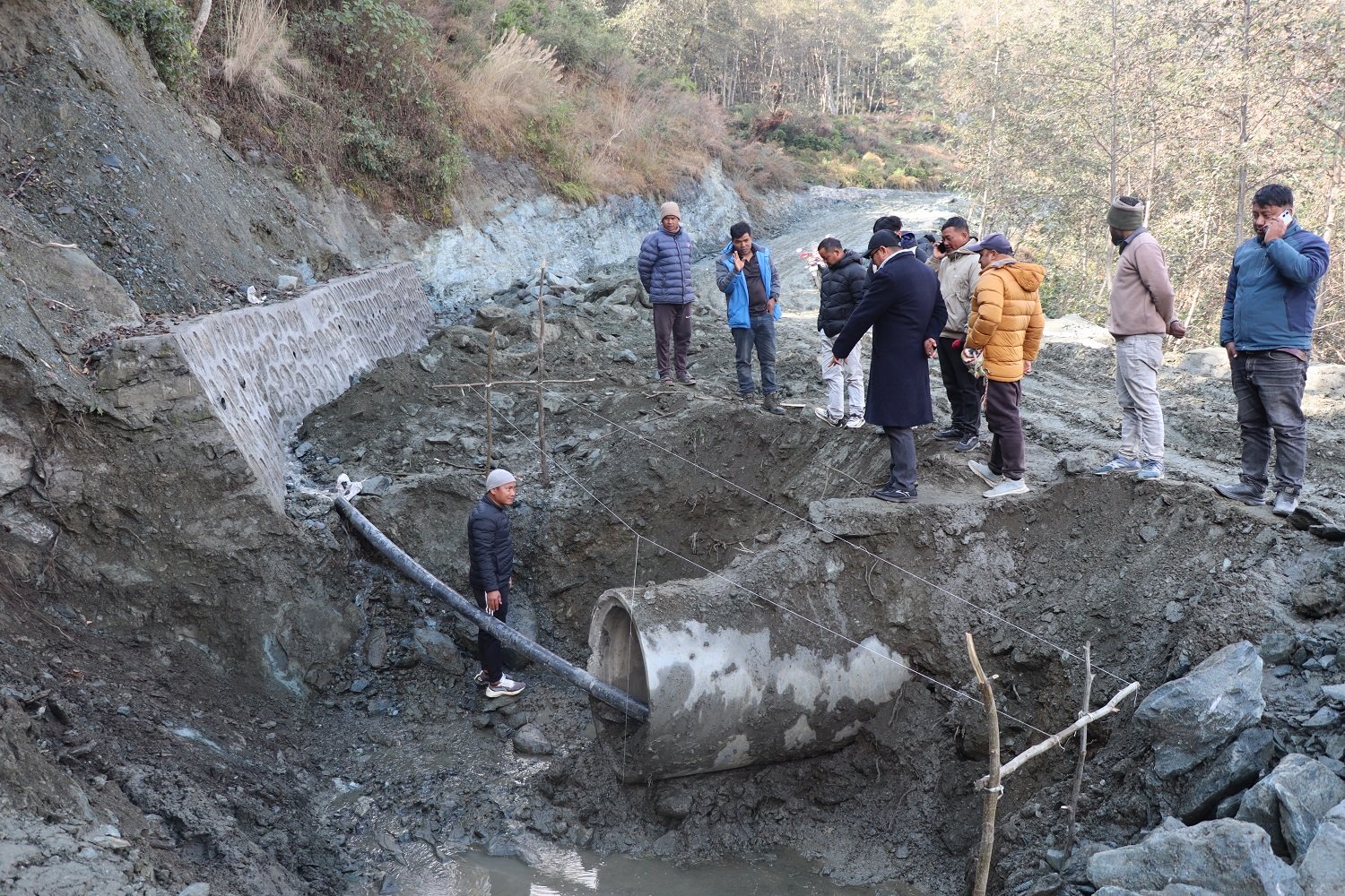 माटो मिसिएको गिट्टी प्रयोग भएको ढलान जनप्रतिनिधीले भत्काइदिए