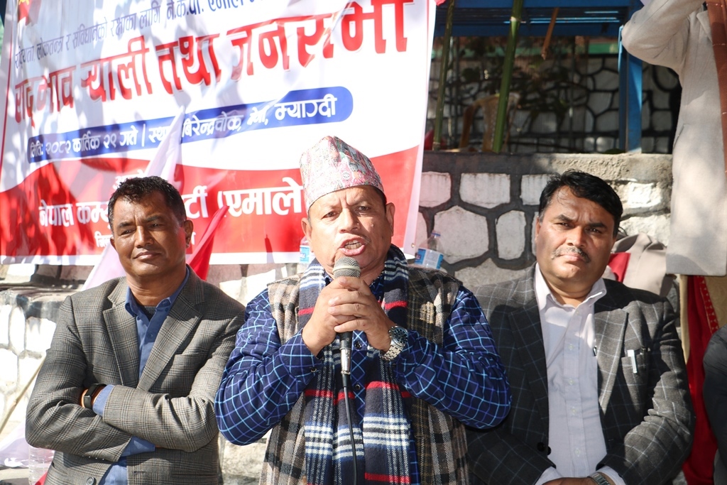 बेनीमा एमालेको जनसभा, राष्ट्रियता र संविधान जोगाउनुपर्नेमा नेताहरुको जोड